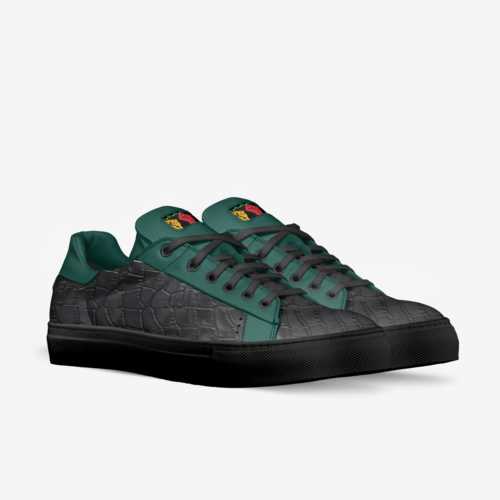 Traditional tennis shoe with derby-style lacing, embossed materials details, and a custom logo tag on the tongue for a clean, neat design